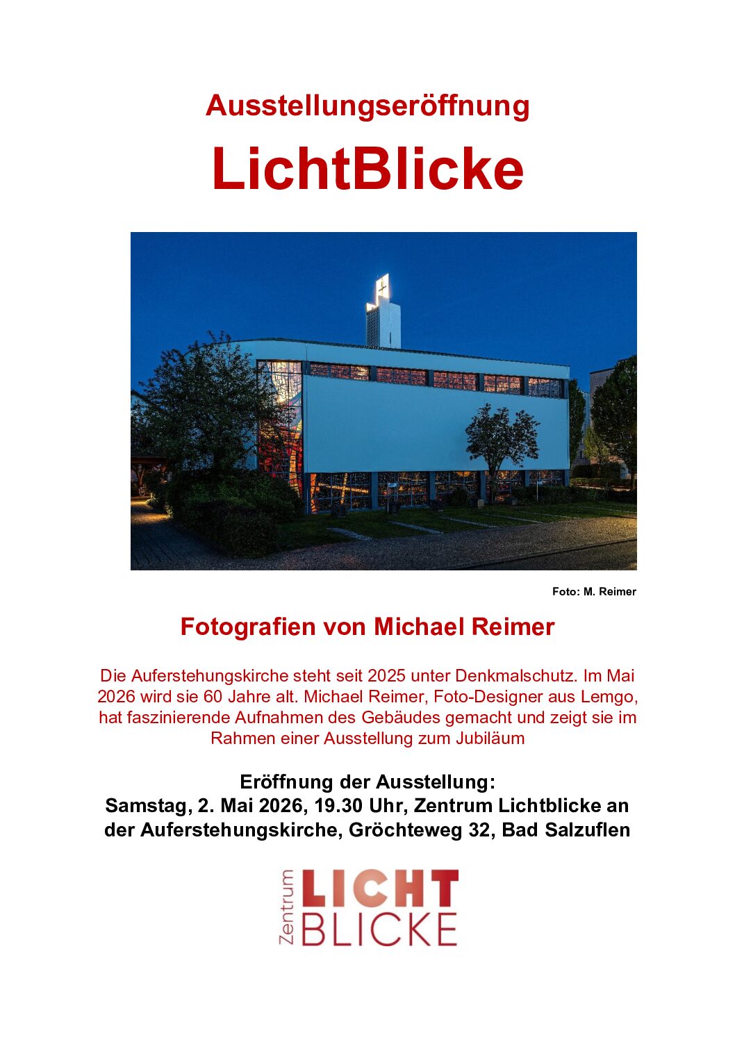 Montag, 20.04. 2026, 18 Uhr, Zentrum Lichtblicke an der Auferstehungskirche